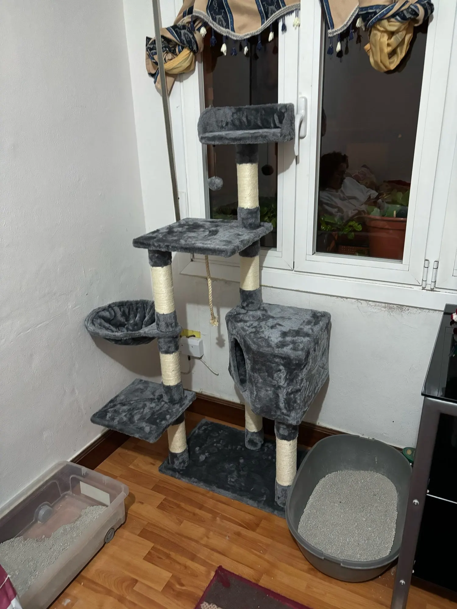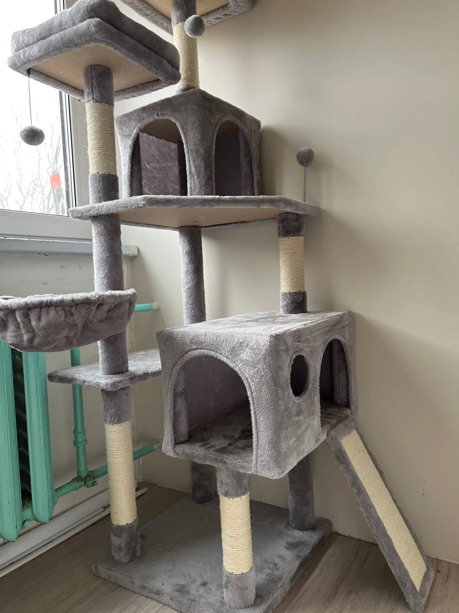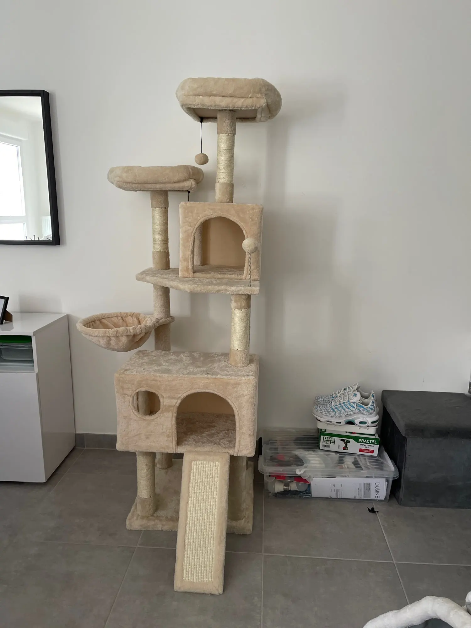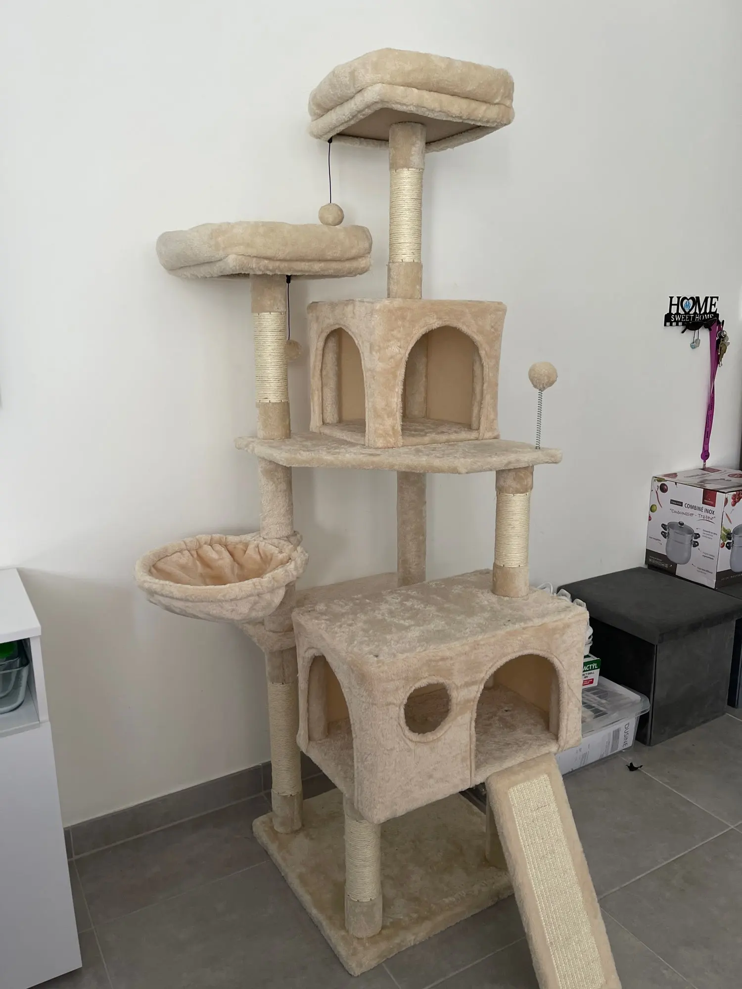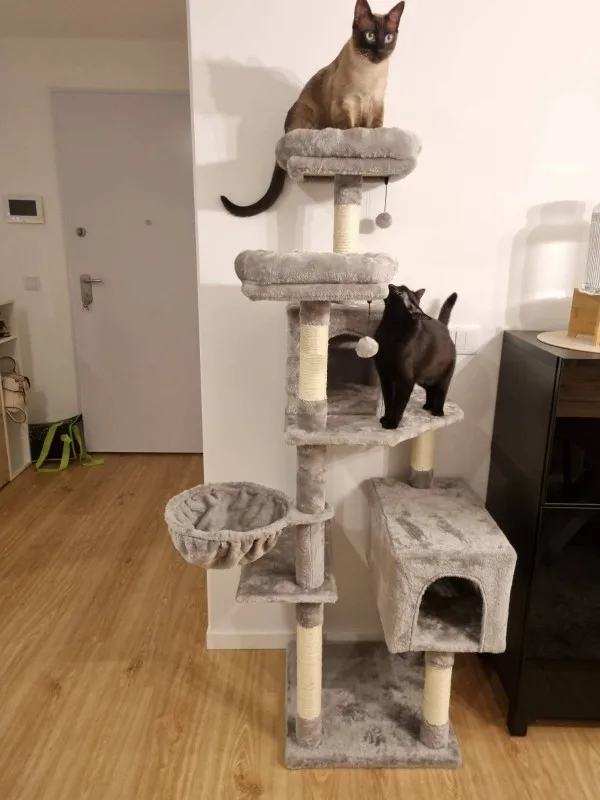 Beautiful cat tree, especially for the price it is of excellent quality, the notice is simple to understand even for those who are not handymakers. It is very large and very wide so pay attention to those who understand putting it in a small space!