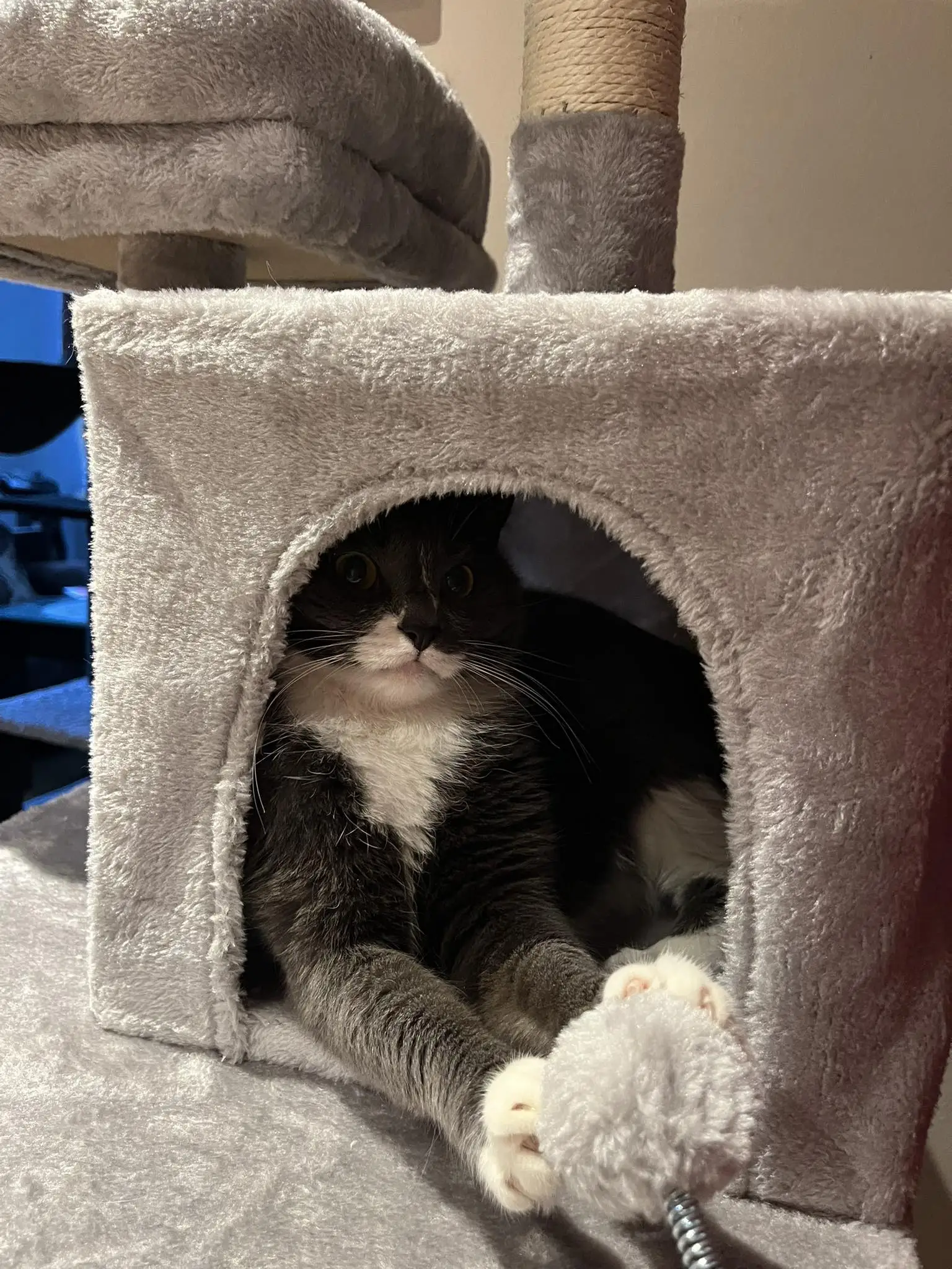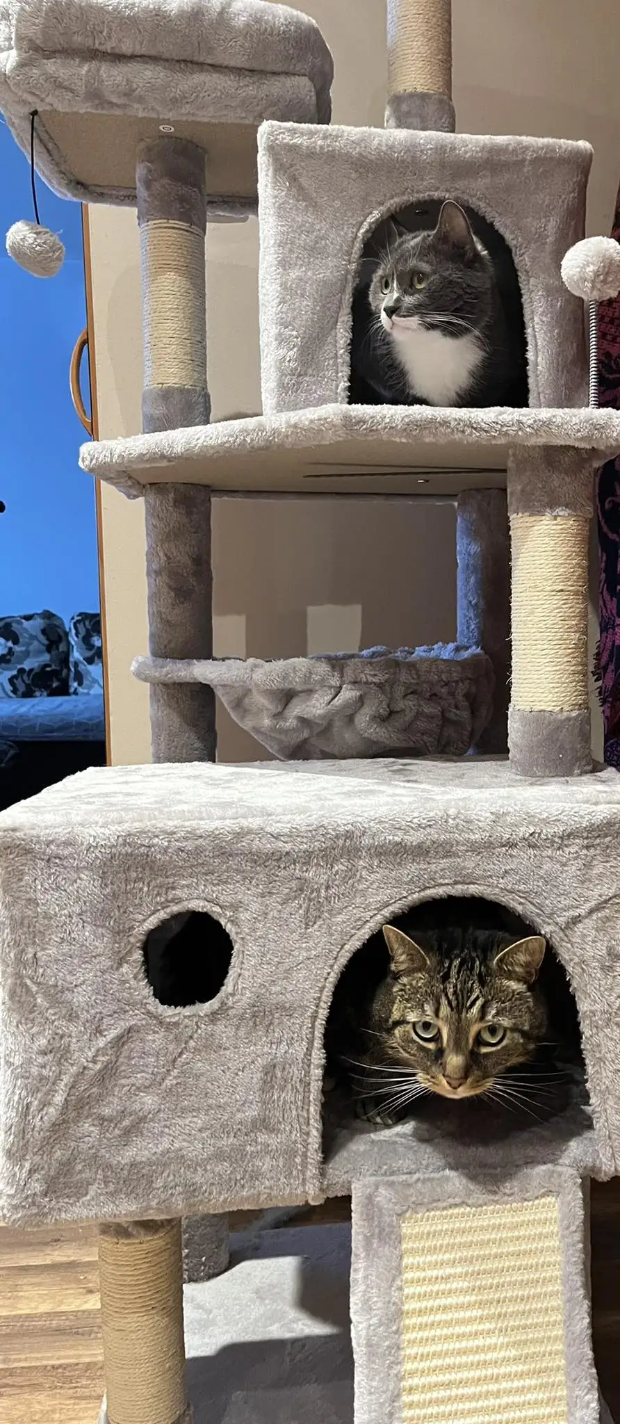 COZY & COMFY: With the soft basket, perches and roomy condo, felines can choose its own perfect napping spot; no need to worry about them with the raised edges of the top perch