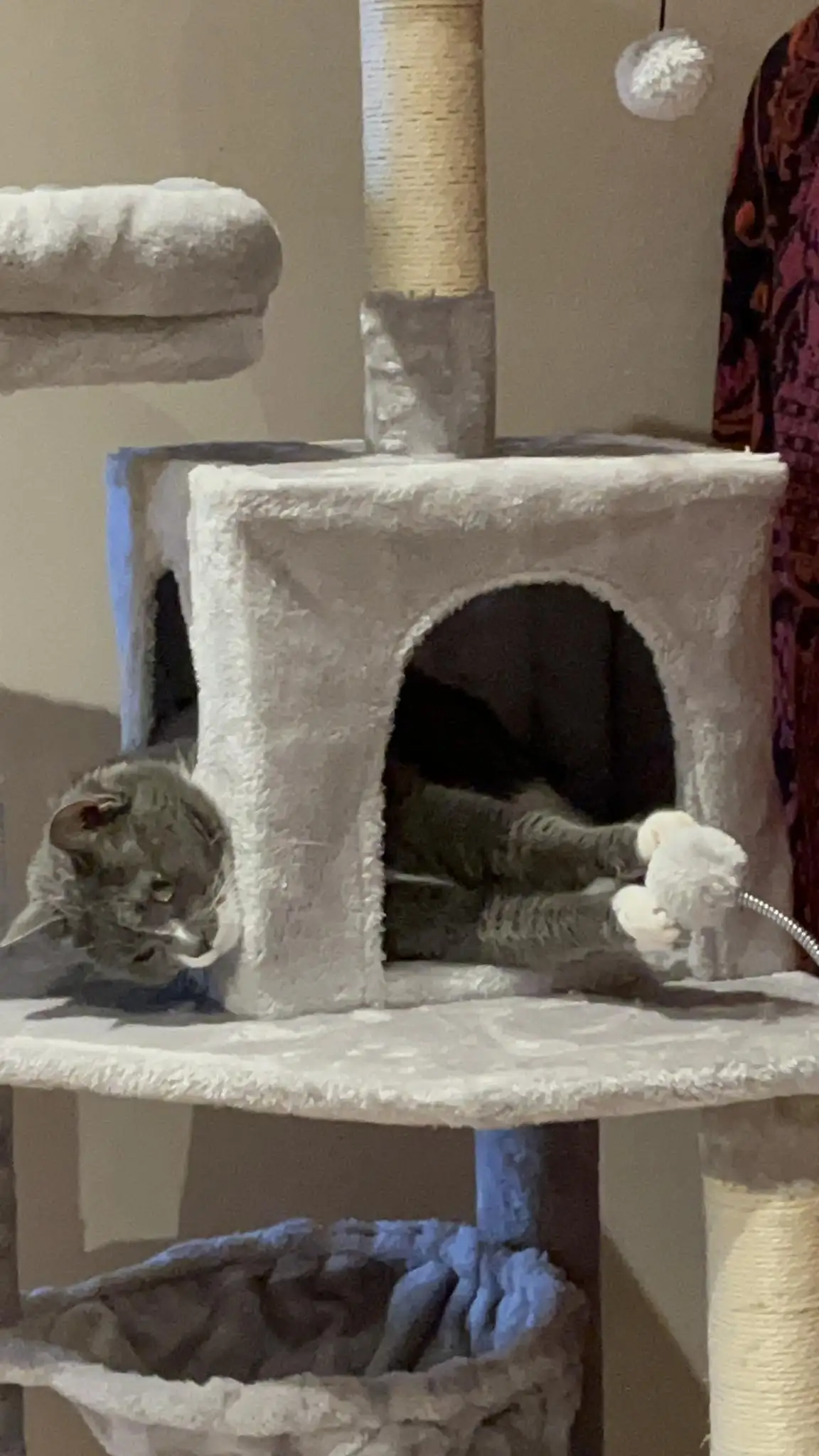 FUN TO PLAY: Multi-level design offers a perfect playhouse for your cats to freely jump around; scratching posts and bottom pad covered with natural sisal rope spare your furniture from sharp claws